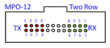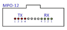 El tipo más común de conector MPO tiene una fila de 12 fibras, de las cuales sólo se utilizan 8. Se suele utilizar con los transceptores SR4 y PSM4.
