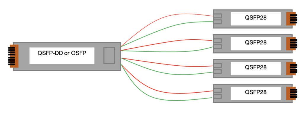 Dos conectores CS pueden caber en el mismo espacio del panel frontal de un transceptor QSFP-DD/OSFP que el que suele ocupar un solo conector LC dúplex o un cable de cinta MPO multimodo. La principal ventaja de utilizar conectores CS en un transceptor QSFP28-DD consiste en la posibilidad de duplicar la densidad de puertos de un conmutador de alto rendimiento.